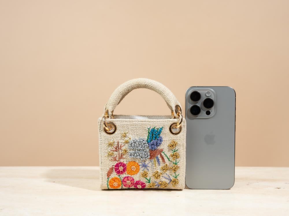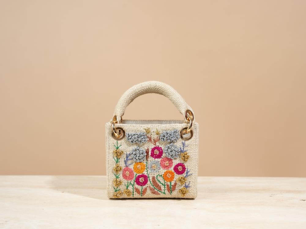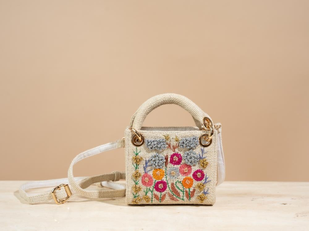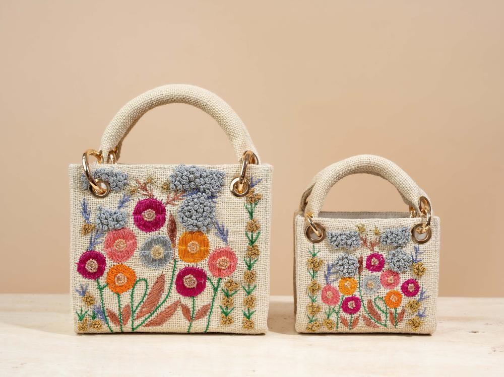 حقيبة الحمل البيبي الخاصة بنا المصنوعة من الجوت المستدام والمنقوشة بأناقة مخيطة يدويا هي ملحق يجب أن تمتلكه. إنه عملي للغاية ويضيف أجواء الاستمتاع المبهج بالطبيعة. يعرض تصميم الفراشة المعقد وعمل الخيوط الدقيق الذي قام به الحرفيون لدينا حقا عملا فنيا. تأتي الحقيبة مع مقبض حمل ، حبال قابلة للفصل ، جيب داخلي وزر إغلاق.