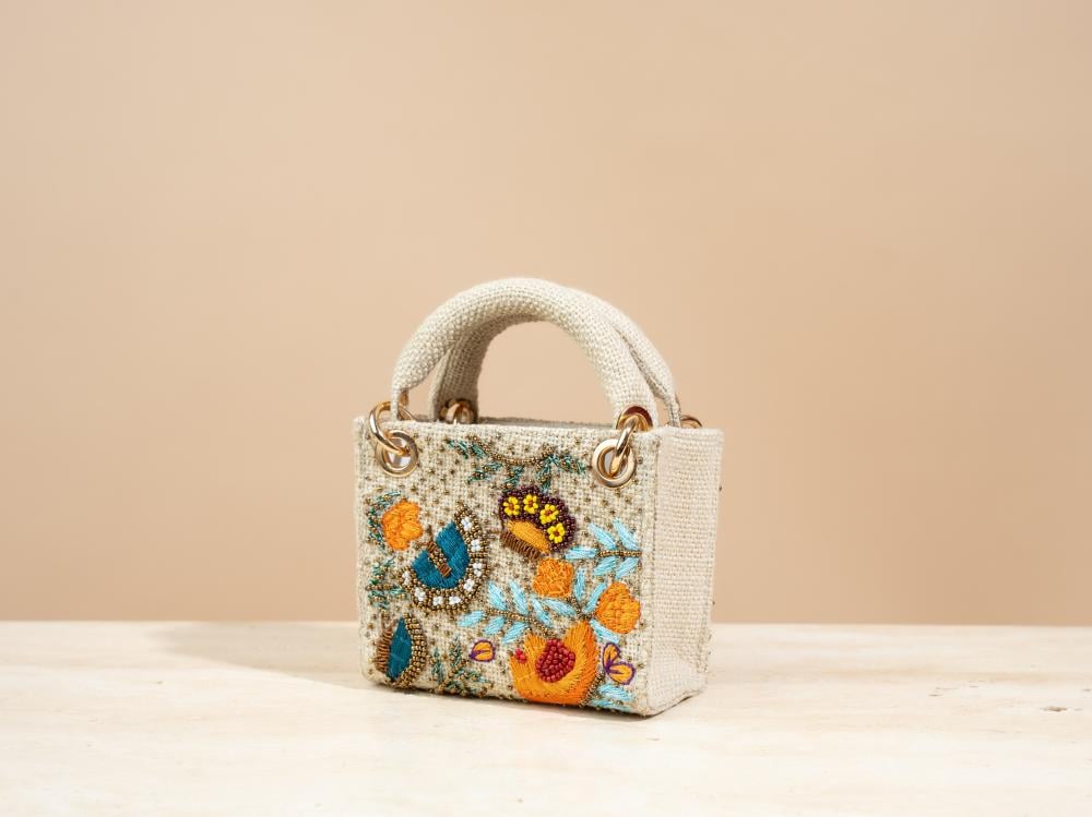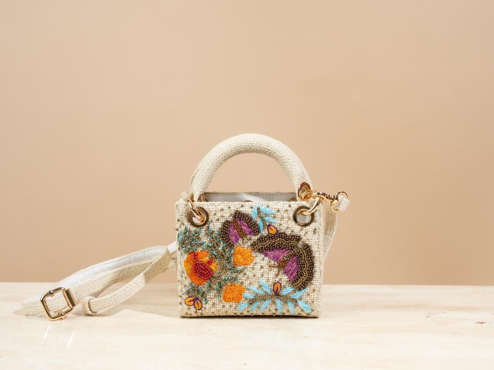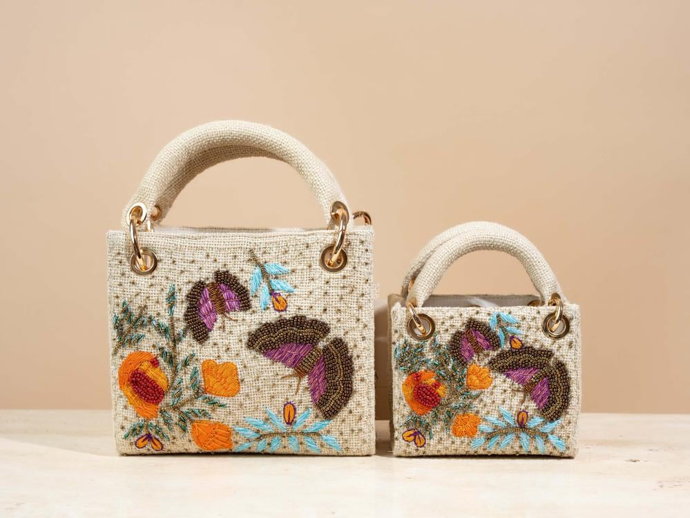 Our Baby tote bag made from sustainable jute and embossed with handstitched elegance is an accessory you must possess. It’s highly functional and adds the vibe of cheerful enjoyment of nature. The intricate butterfly design and precise threadwork done by our craftsmen truly showcases a work of art. The bag comes with a tote handle ,a detachable sling , an inside pocket and a closing button.